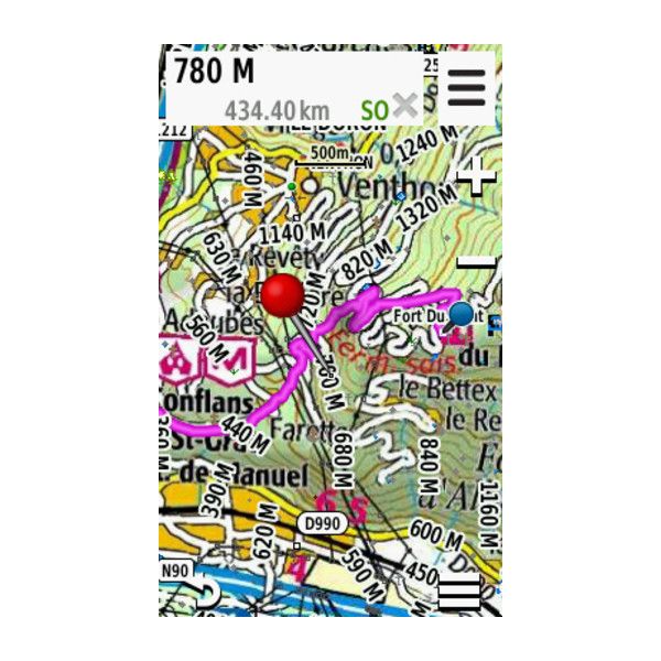 Always find the right tracks from your alpine adventure in the Alps and Pyrenees regions of France as well as in Corse. This ultimate map for outdoor recreation includes address search, points of interest (POIs), named trails and Active Routing¹.