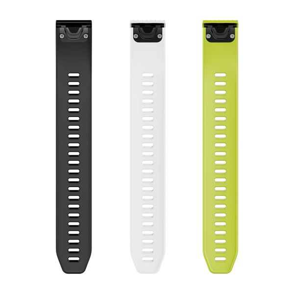 Watch Band Fenix® 5s - QuickFit™ 20, Large White, Black & Yellow Silicone - Ajustable Side Only